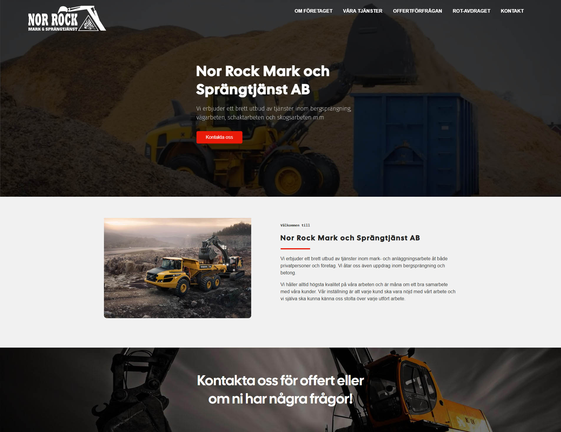 För Nor Rock har Jemtbyrån tagit fram en tydlig och funktionell webbplats som presenterar företagets tjänster inom markarbete, bergsprängning och betong.