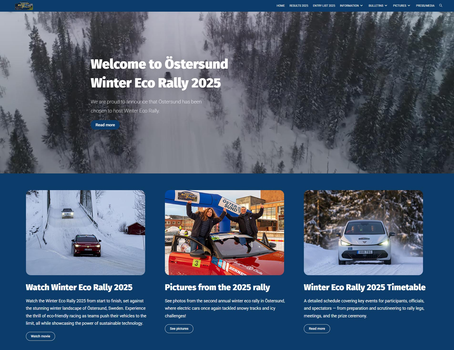 Jemtbyrån har skapat webbplatsen för Winter Eco Rally 2025 – ett evenemang som kombinerar elbilar, hållbarhet och vinterkörning i Östersund.